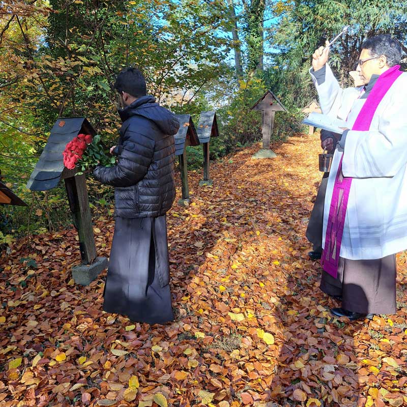 Eine schöne Tradition ist es, eingeführt durch unsere Karmeliten auf dem Michaelsberg, am Samstag nach Allerheiligen die Gräber der verstorbenen Benediktiner zu segnen.