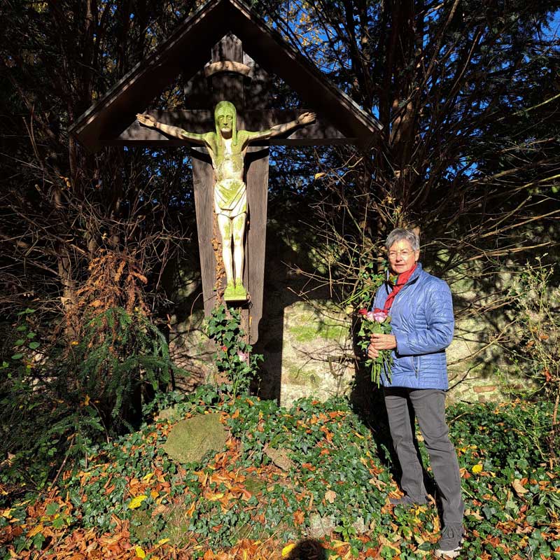 Mit dabei immer die Vorsitzende unseres Vereins mit einem großen Strauß langstieliger Rosen, mit denen jedes Grabkreuz einen Grußschmuck erhält. Im herrlichen Sonnenschein, auf dem gut gepflegten Gräberfeld, nannte P. Rockson den Namen des dort Beerdigten, segnete mit Weihwasser und sprach dann seinen Segensspruch. Den Abschluss machte der Rosengruß, 49 Mal ein frommes Gedenken.